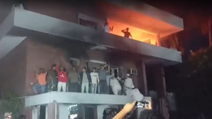 ধানমন্ডি ৩২ নম্বরে বিক্ষুব্ধ জনতার আগুন-ভাঙচুর